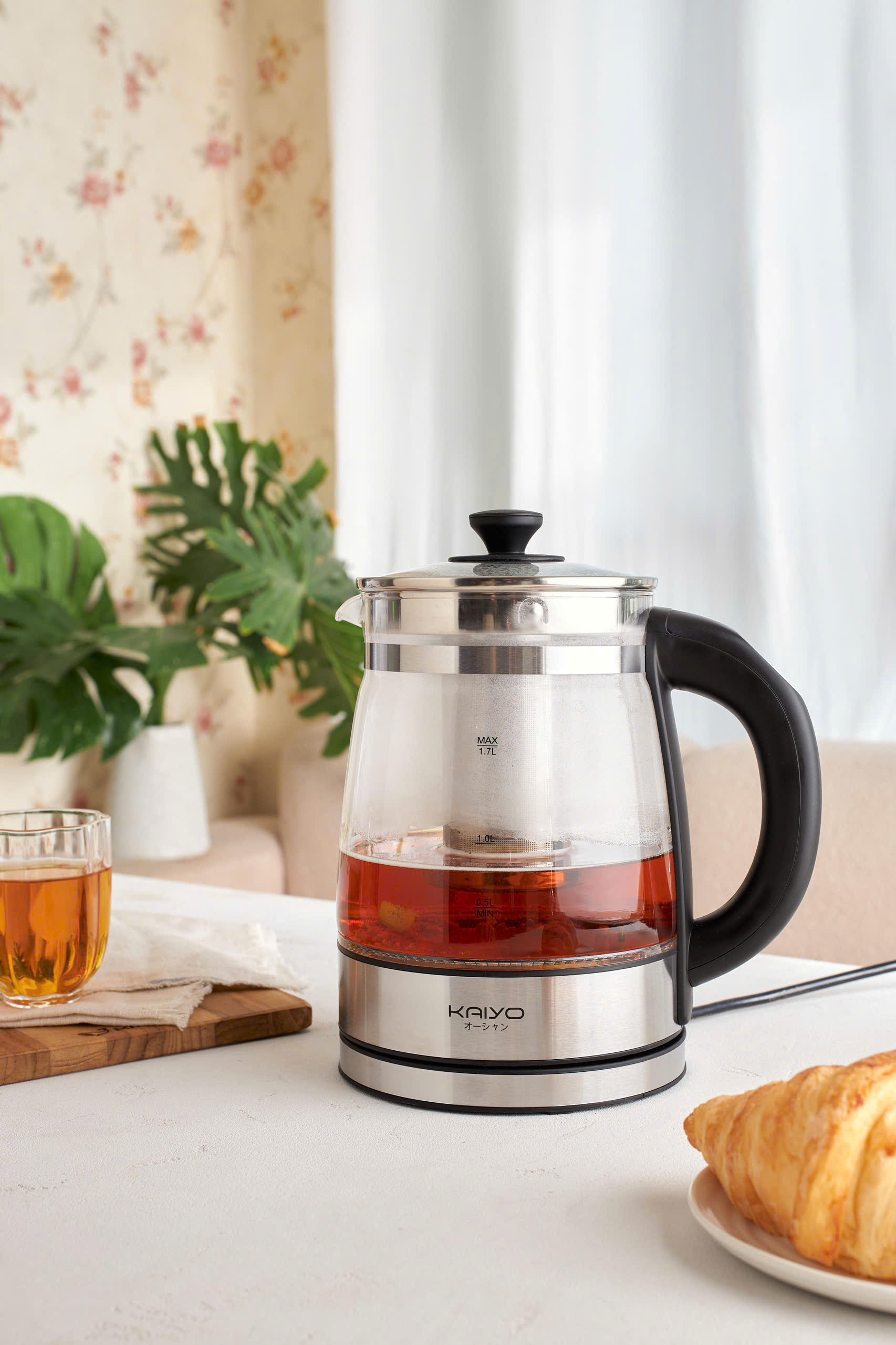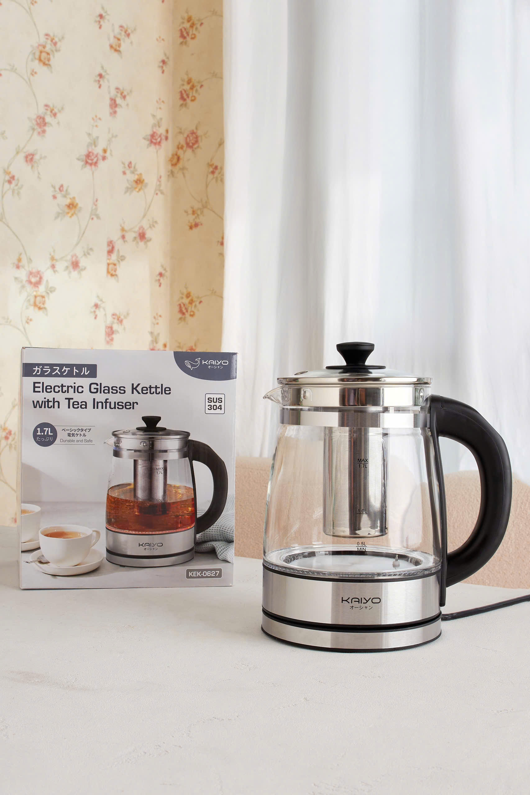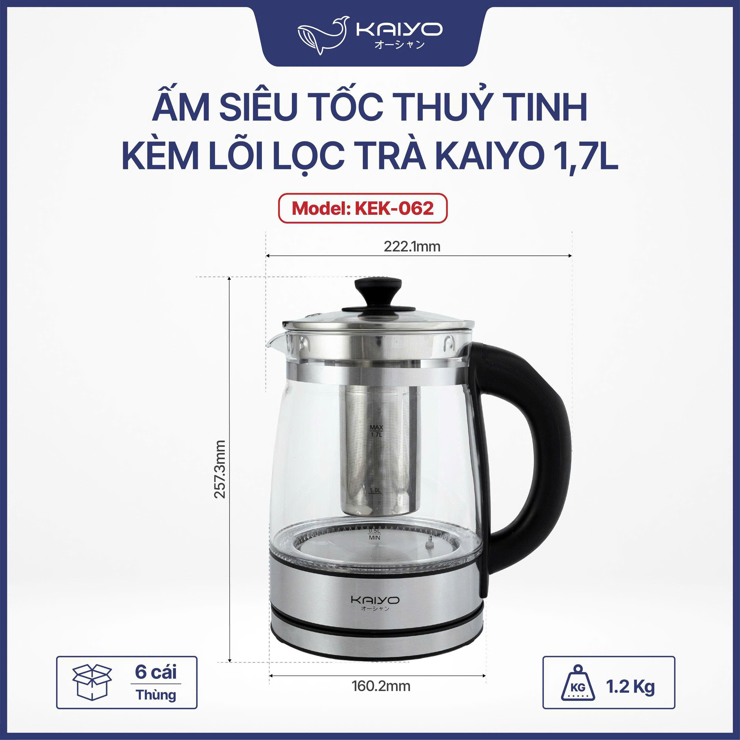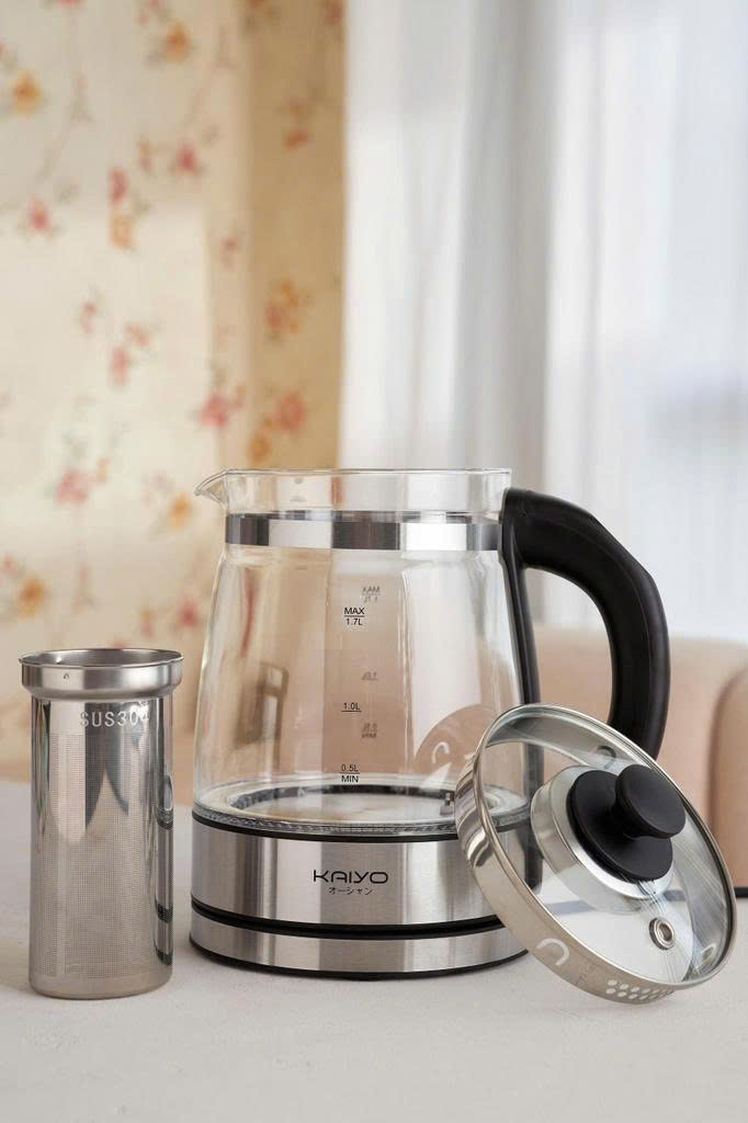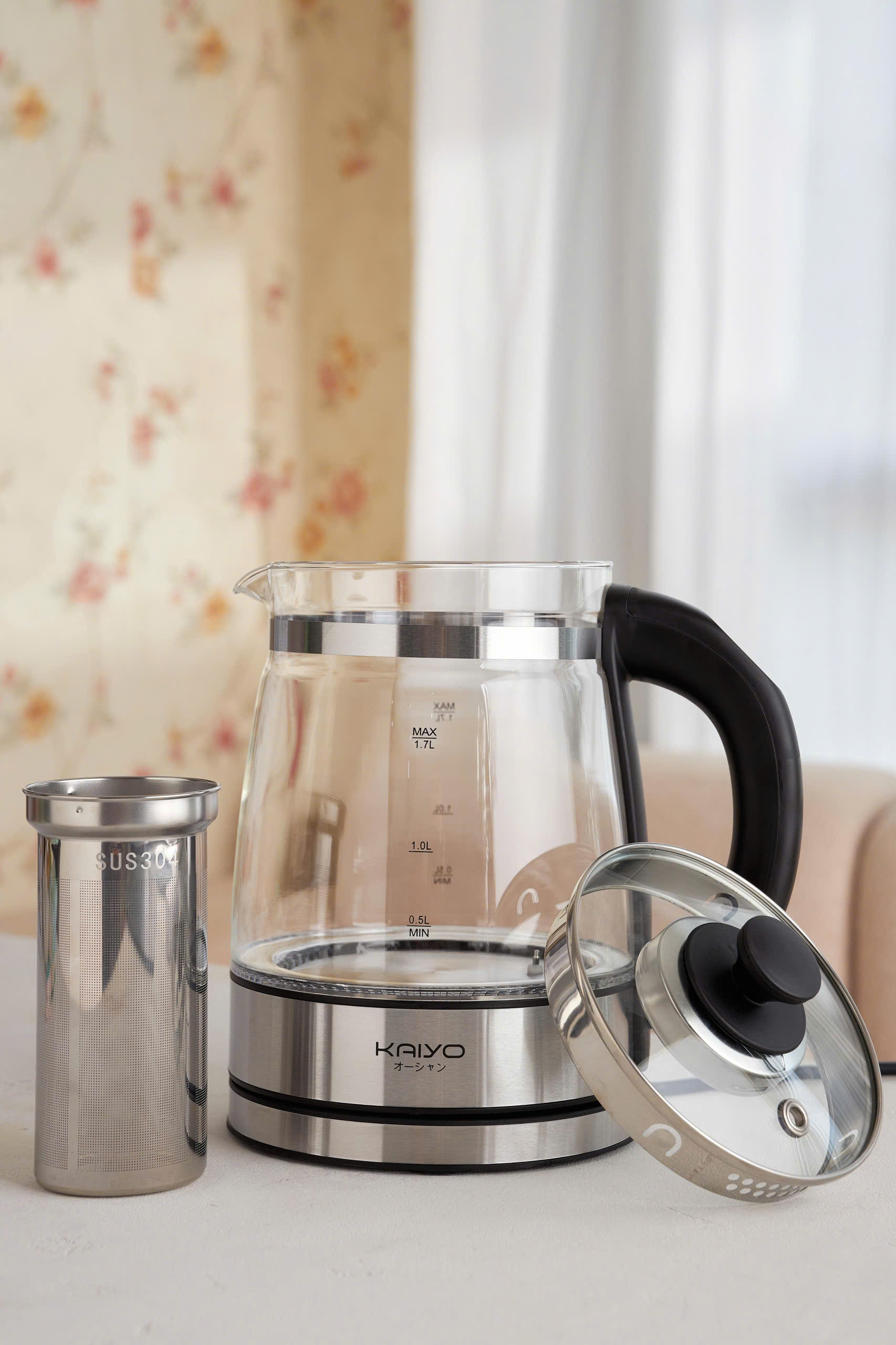 Ấm siêu tốc thủy tinh Kaiyo sử dụng toàn bộ thân và nắp bằng thủy tinh borosilicate cao cấp, trong suốt – chịu nhiệt cực tốt, đảm bảo an toàn khi đun nước và pha trà. Thiết kế tinh tế, hiện đại, cho trải nghiệm pha chế thơm ngon và chuẩn vị hơn.