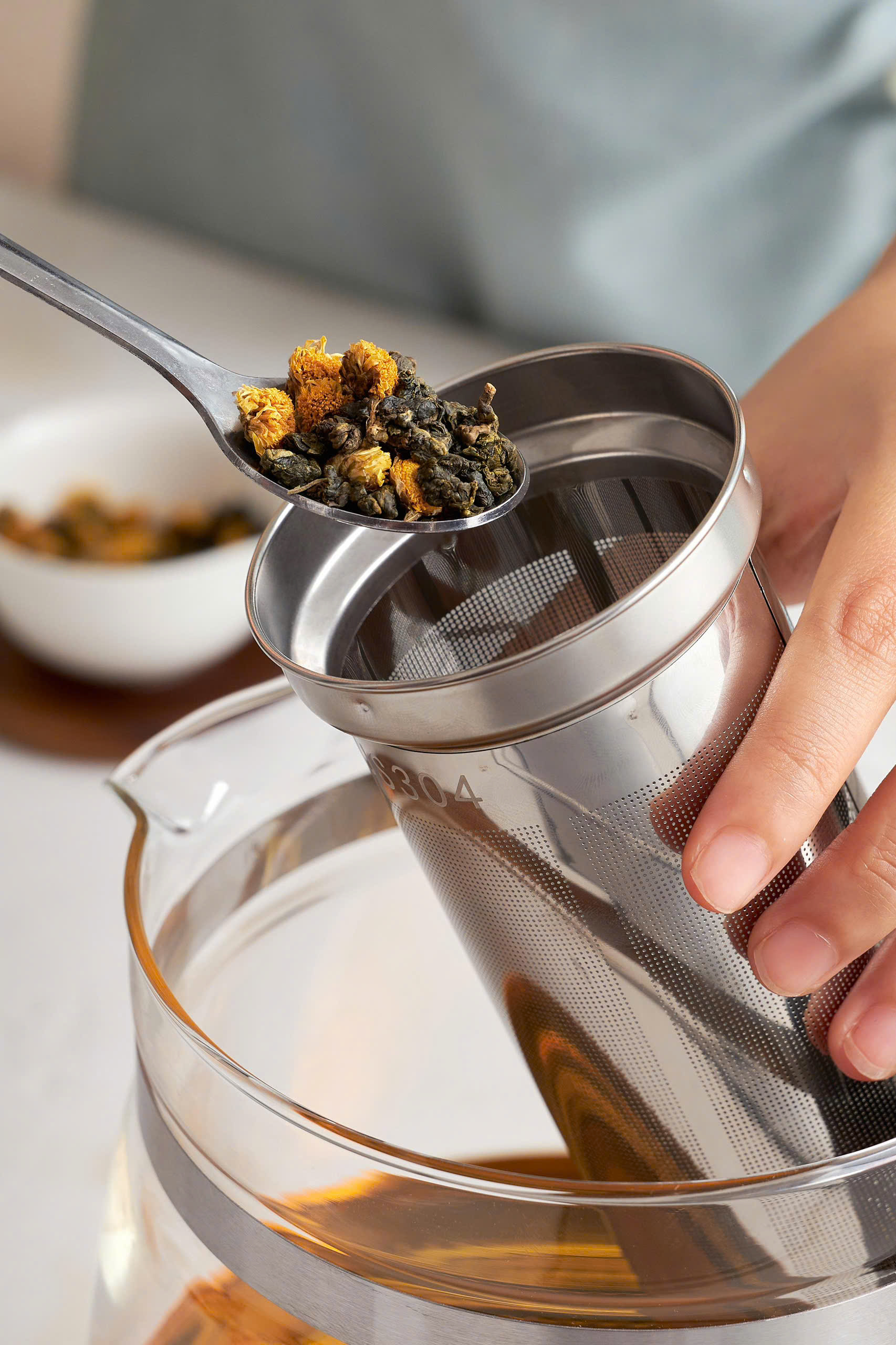 Lõi lọc trà inox 304: Phù hợp pha trà, thảo mộc; dễ tháo lắp và vệ sinh.