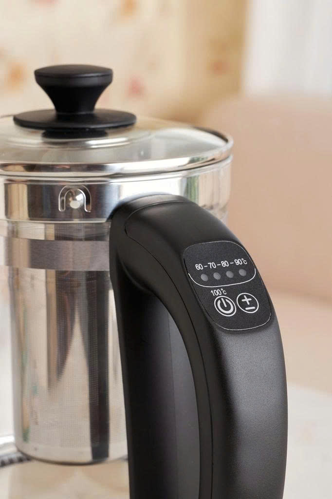 Thân & nắp ấm bằng thủy tinh borosilicate: Chịu nhiệt lên đến 500°C, chống sốc nhiệt, bền chắc và an toàn. Chất liệu trong suốt giúp quan sát quá trình đun nước, đồng thời hạn chế bám cặn và ố màu.