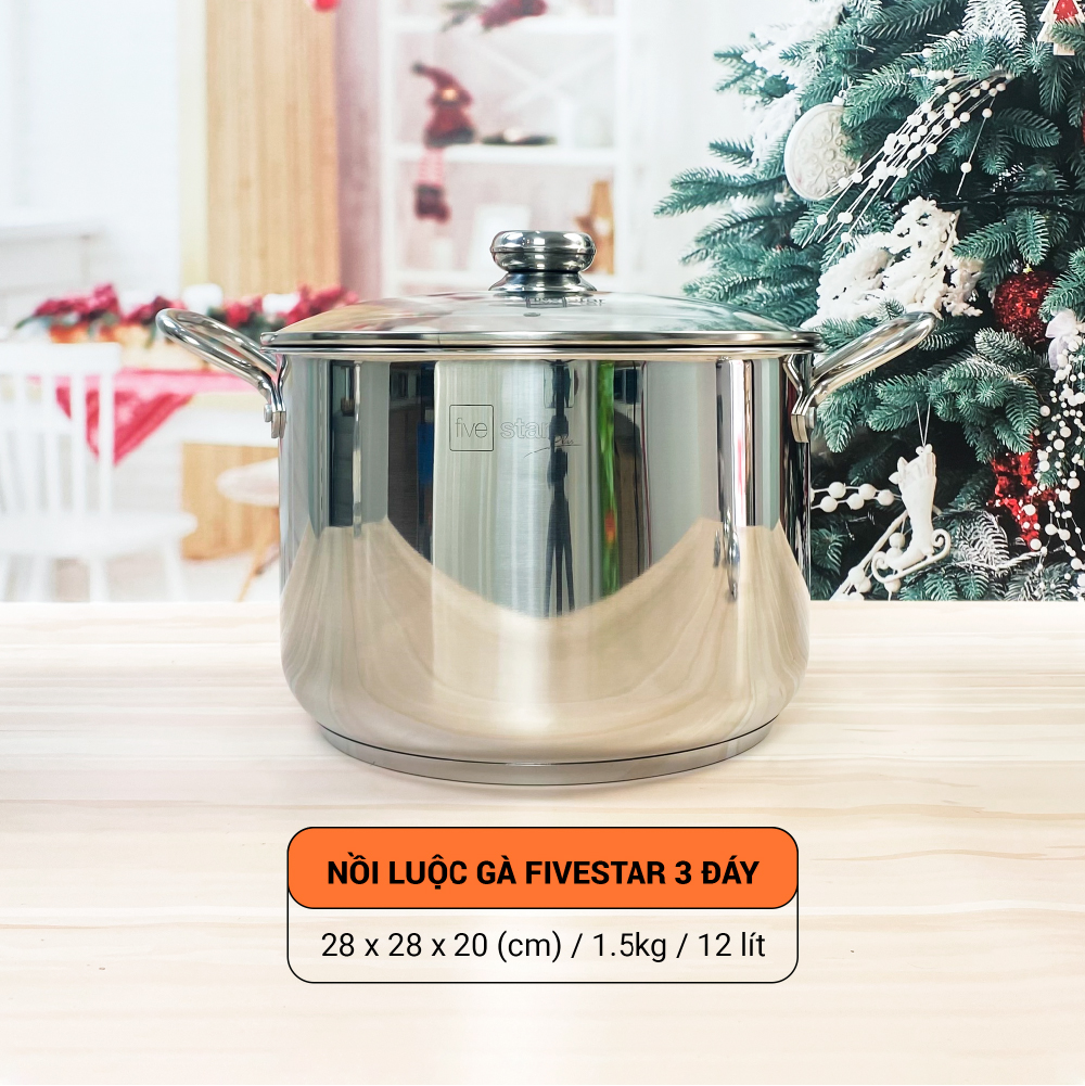 Nồi luộc gà inox 304 28cm Fivestar Vinamilk 3 đáy