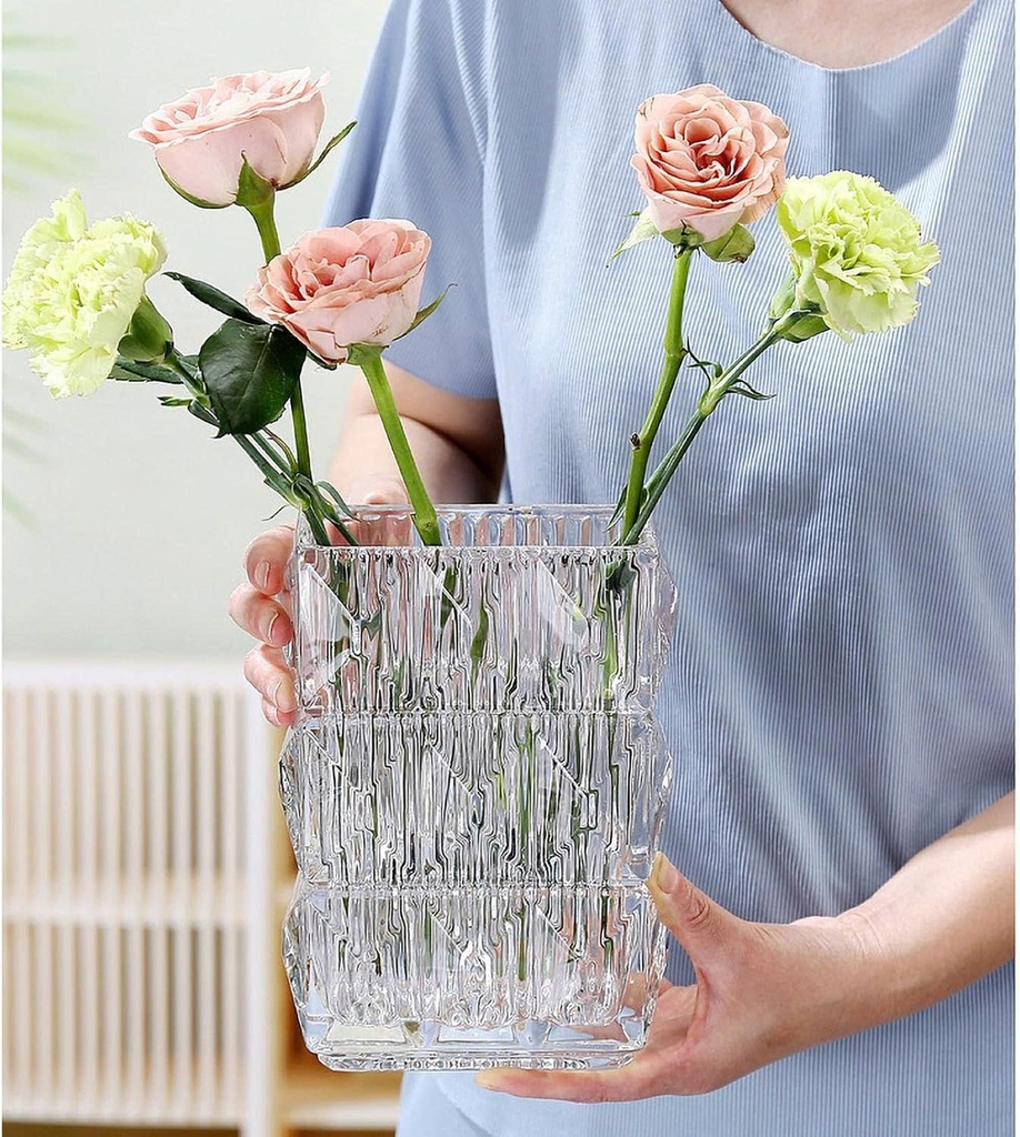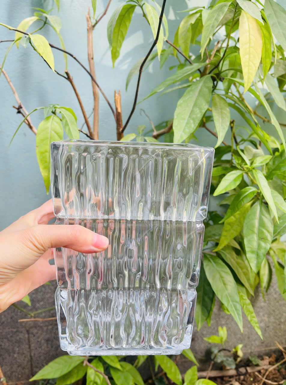 Nếu chị em đang tìm một mẫu bình hoa đơn giản nhưng có gu, dễ phối với nhiều không gian thì bình hoa thủy tinh dáng vuông vân sóng GHA913 là lựa chọn rất đáng cân nhắc.
