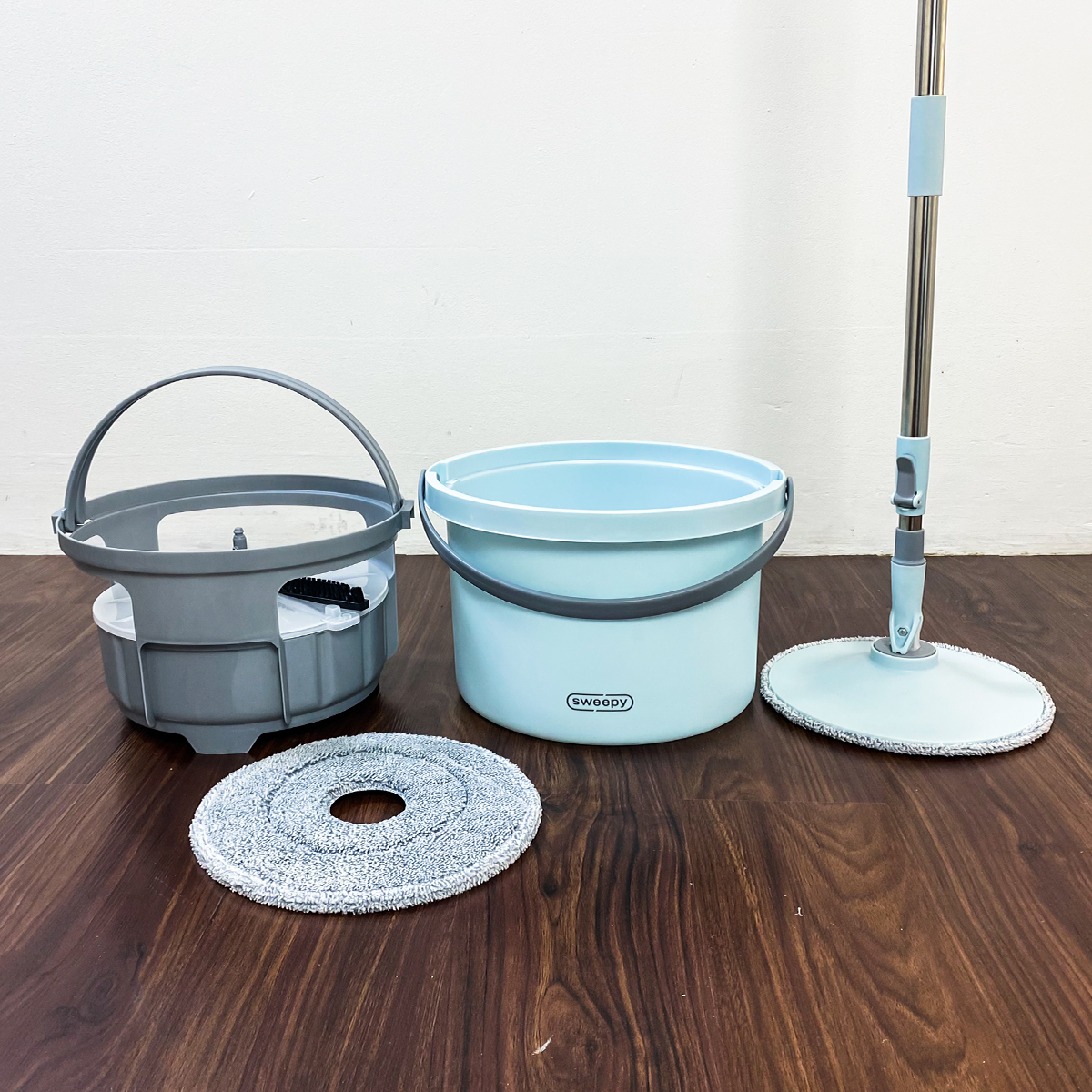 Tổng thể thiết kế của bộ cây lau nhà Sweepy ETM972 cũng được hội chị em yêu thích. Thùng vắt bằng nhựa cao cấp và rất dày dặn, tay xách chắc chắn. Thân cây lau bằng thép không gỉ cứng cáp, các khớp nối chắc chắn và được bọc nhựa để mang lại sự thoải mái khi cầm nắm. Tổng thể lấy màu xanh dương pastel làm chủ đạo, rất trang nhã, sang trọng, hài hòa với mọi không gian.