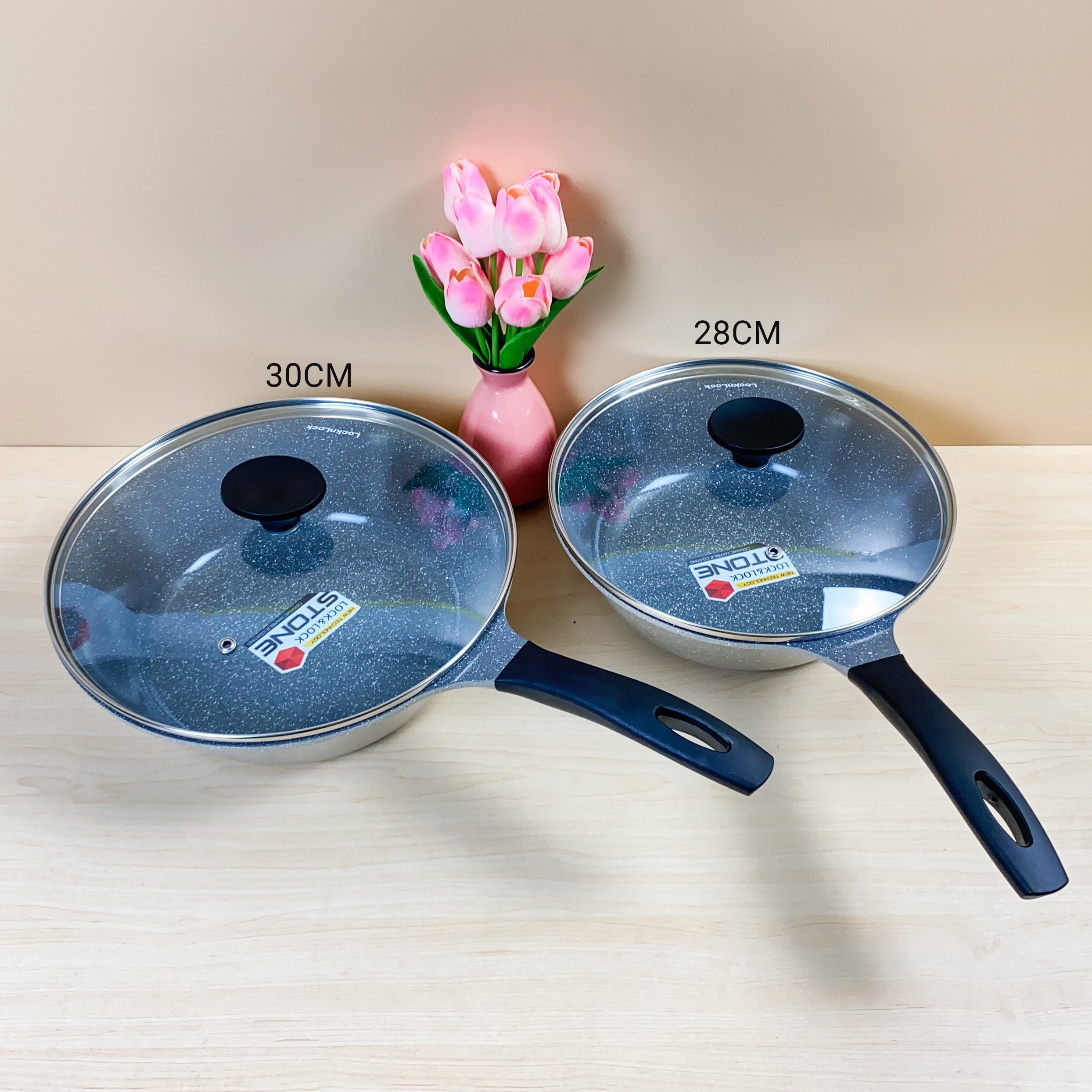 Chảo Đá Cao Cấp Vung Kính Lock&Lock Stone 28cm LCA6285D - 30cm LCA6305D Dùng Bếp Từ