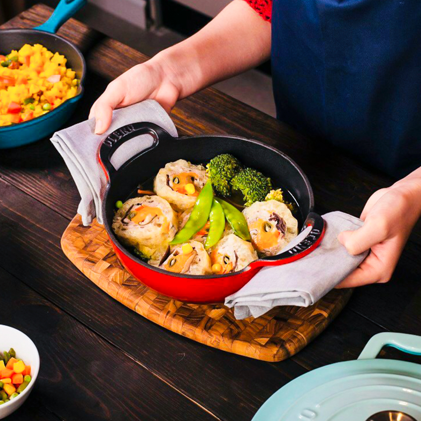 - Ưu điểm tối ưu của chảo gang Oceno là có thể dùng trong lò nướng bởi chúng hoàn toàn được làm từ gang nên có khả năng chịu được nhiệt độ cao, lên tới 250oC. Bạn có thể dùng chảo gang Oceno để chế biến các món ăn hấp dẫn dùng với lò nướng như các loại bánh, các món nướng …