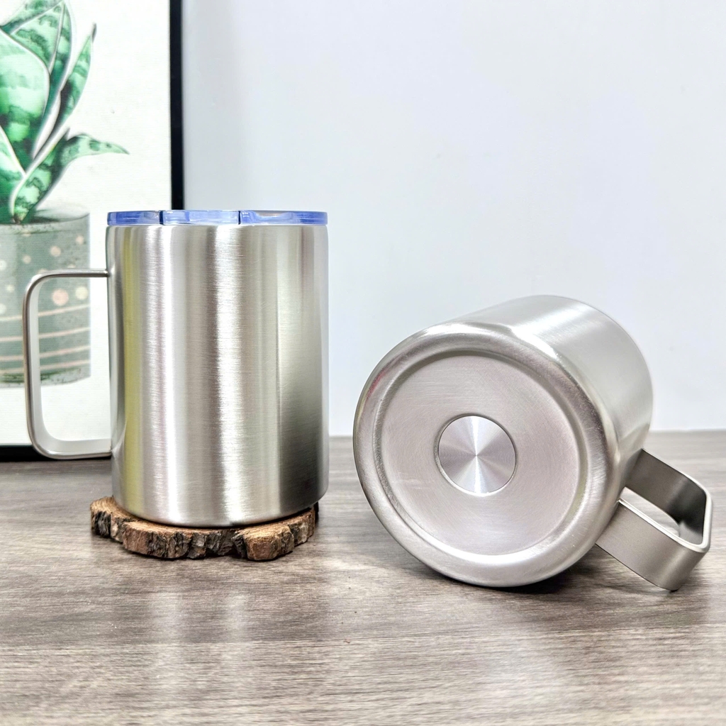 Tay cầm inox đúc liền thân cốc cực kỳ chắc chắn, cầm nắm thoải mái, không lỏng lẻo, mang lại cảm giác an tâm khi sử dụng.