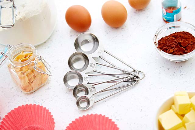 Đồ đong nguyên liệu thường được sử dụng để cân đong chính xác các nguyên liệu làm socola như đường, bột cacao,... nhằm tạo ra socola ngon ngọt và chuẩn bị. Bạn có thể chuẩn bị dụng cụ đong như bộ thìa đong, cốc đong,...