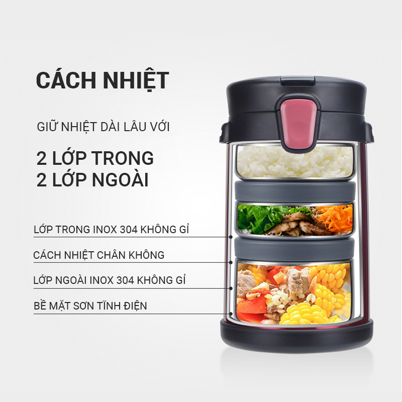 Có khả năng tự động giữ nóng cho thực phẩm mà không cần sử dụng điện, bạn chỉ cần cho cơm, thức ăn vào hộp, đậy nắp cẩn thận mang đi làm, đi dã ngoại... và khi ăn chỉ cần mở nắp và dùng ngay thôi, không cần chờ đợi hâm nóng.