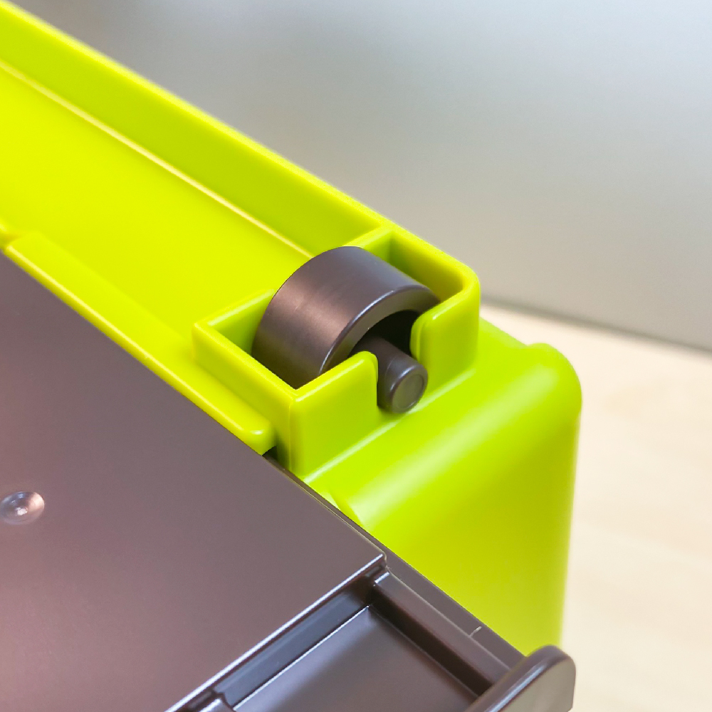 Dưới đáy khay có bánh xe, bạn chỉ cần nghiêng xuống là có thể trượt, kéo khay một cách nhẹ nhàng cho dù kệ đang chứa rất nhiều thực phẩm bên trong.