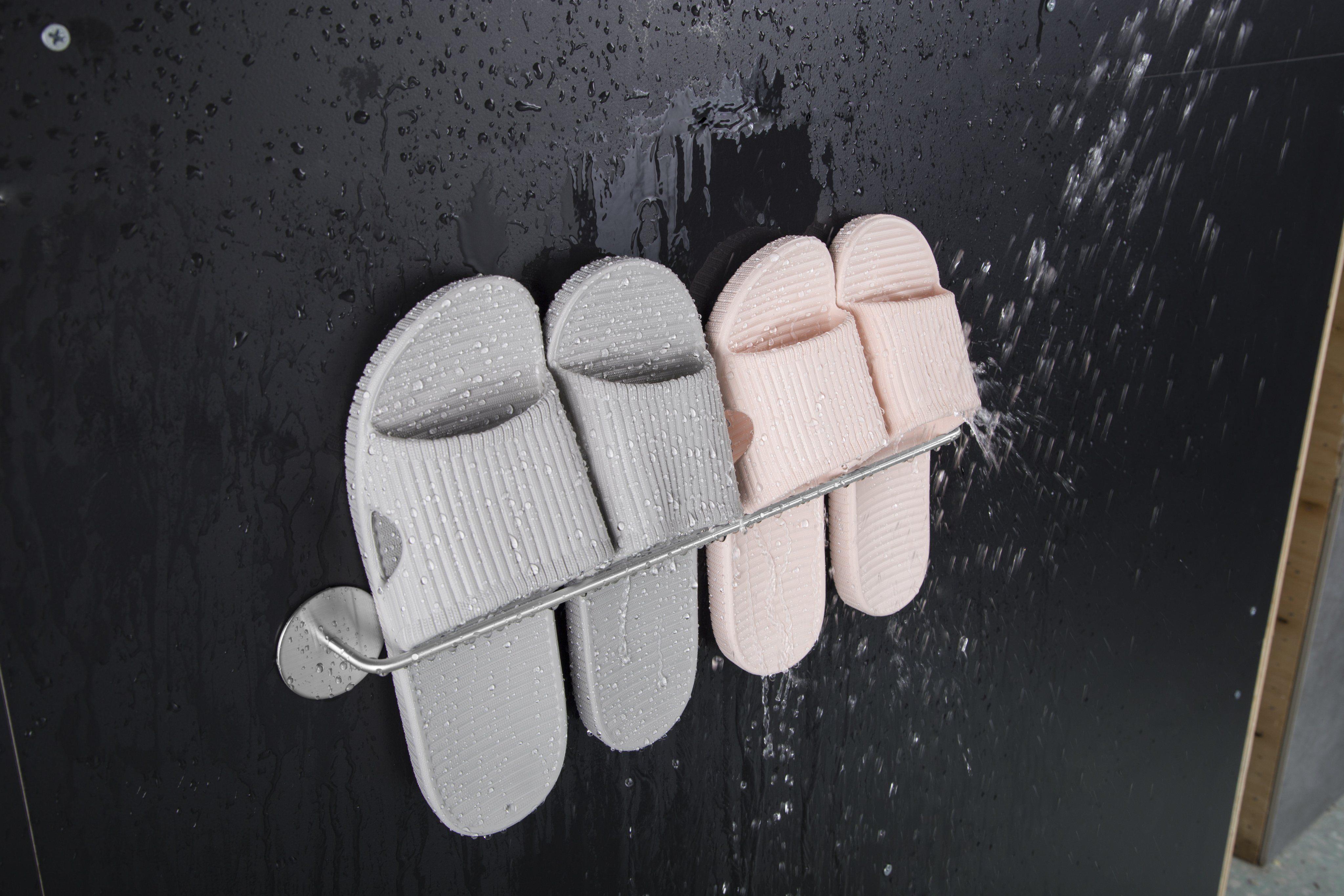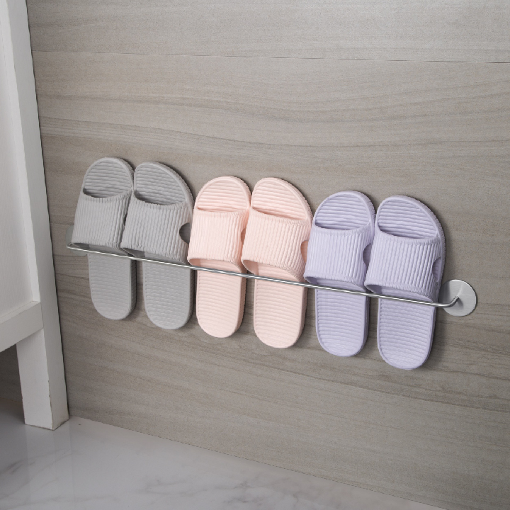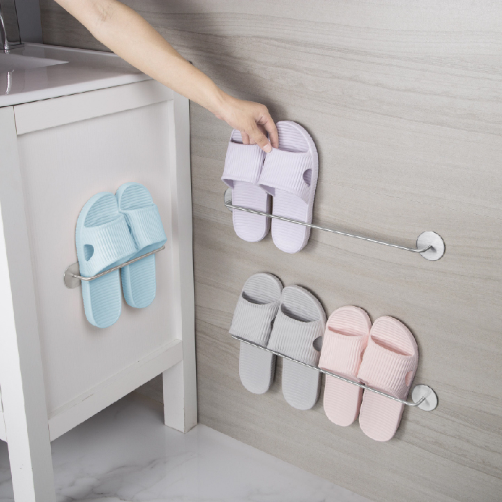 Với thiết kế thanh chắn ngang đơn giản mà tinh tế, giá gài dép giúp bạn tiết kiệm thêm không gian trong ngôi nhà bằng việc dán trên cửa, tường của phòng tắm hoặc phòng ngủ. Với một chiếc giá tiện dụng như thế này, bạn có thể thoải mái sắp xếp dép đi trong nhà một cách ngăn nắp và gọn gàng mà không sợ ảnh hưởng đến lối đi.
