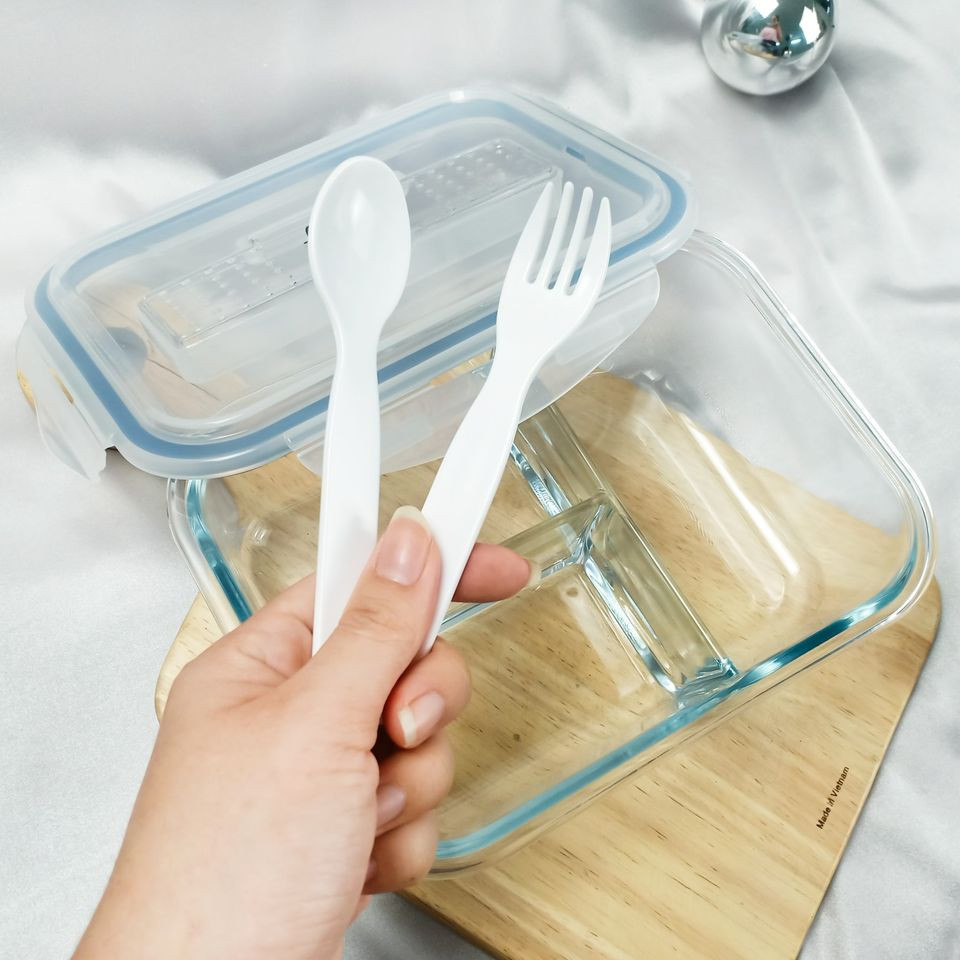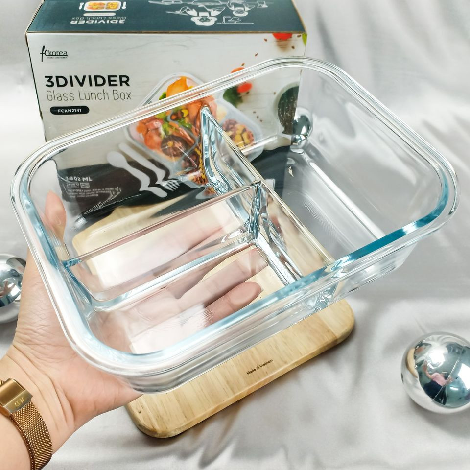 Hộp thủy tinh 3 ngăn FCKorea kèm muỗng nĩa 1400ml có dung tích 1400ml đựng được rất nhiều đồ ăn. Bên cạnh đó, với thiệt kế 3 ngăn giúp việc bạn phân chia các món ăn trở nên đơn giản và tiện lợi hơn rất nhiều.