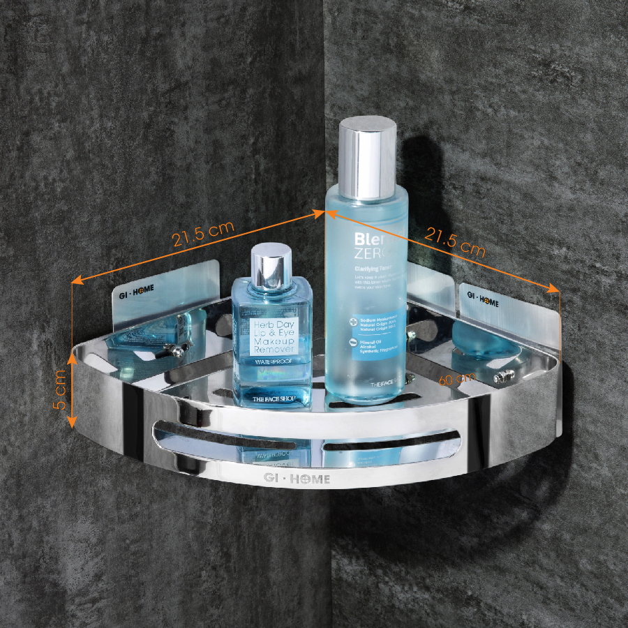 - Kích thước: 21.5cm x 21.5cm x 4.5cm (độ dày inox 1.8mm) cho phép kệ có sức chứa lớn mà không chiếm không gian nhờ có thiết kế dán tường thông minh.