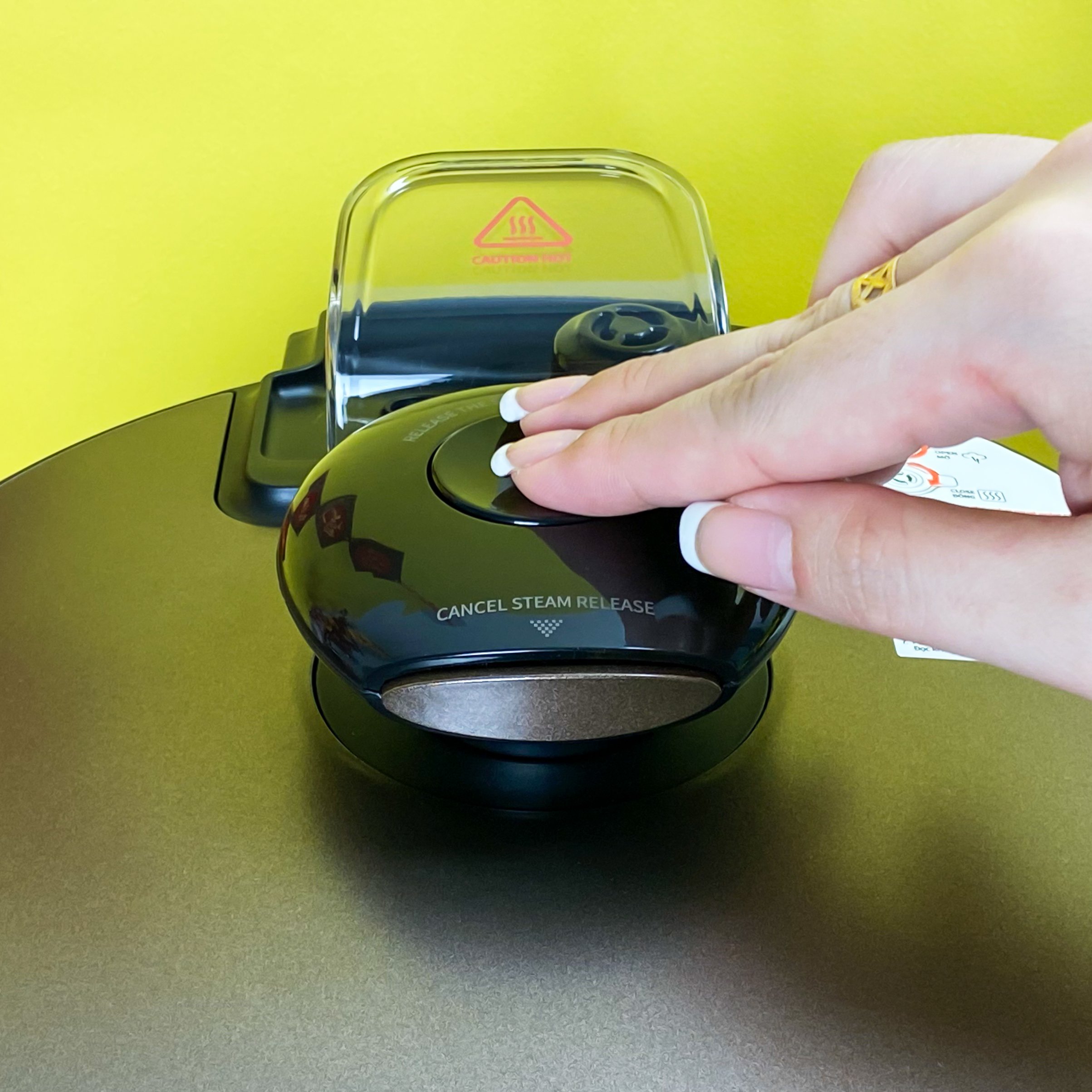 - Lỗ thoát hơi có nắp đậy an toàn. Giảm áp suất bằng nút thả an toàn giúp giữ tay tránh khỏi hơi nước nóng.