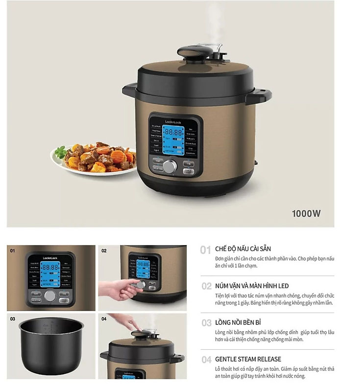 Nồi Áp Suất Điện Tử Đa Năng Lock&Lock 6L Màu Gold 1000W - EJP676BLK