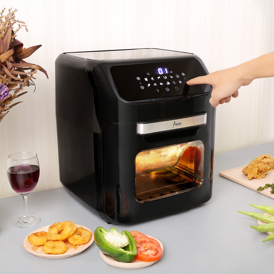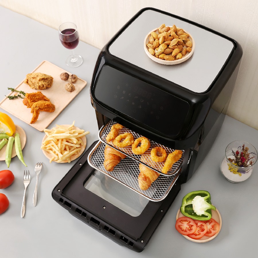 - Tiện lợi, dễ dàng giúp chị em trở thành những đầu bếp chuyên nghiệp. Nồi có đến 12 chế độ tự động giúp bạn dễ dàng nướng thức ăn với 1 lần ấn, sau 15-30ph bạn sẽ có món khoai tây chiên, bánh pizza, thịt gà nướng, thịt quay, tôm nướng… thơm lựng. - Với chị em yêu nội trợ, thích khám phá những món ăn mới, nồi có thể tùy chỉnh nhiệt độ và thời gian để chế biến hàng trăm món ăn cho cả gia đình. Có thể nói với nồi chiên 12L , bạn sẽ trở thành đầu bếp cho cả gia đình với những món ăn không kém gì ngoài hàng.