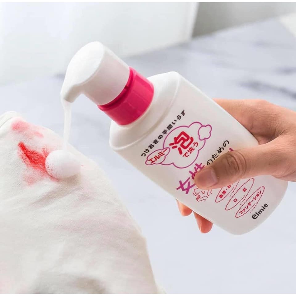 - Nước giặt chuyên dụng cho đồ lót Elmie 200ml có khả năng kháng khuẩn, chổng nấm mốc, làm giảm bớt nguy cơ các bệnh phụ khoa.