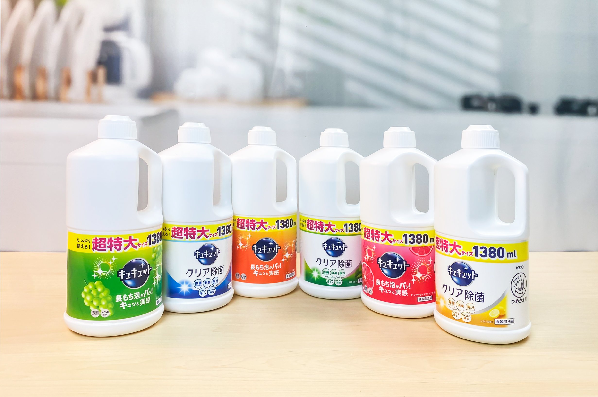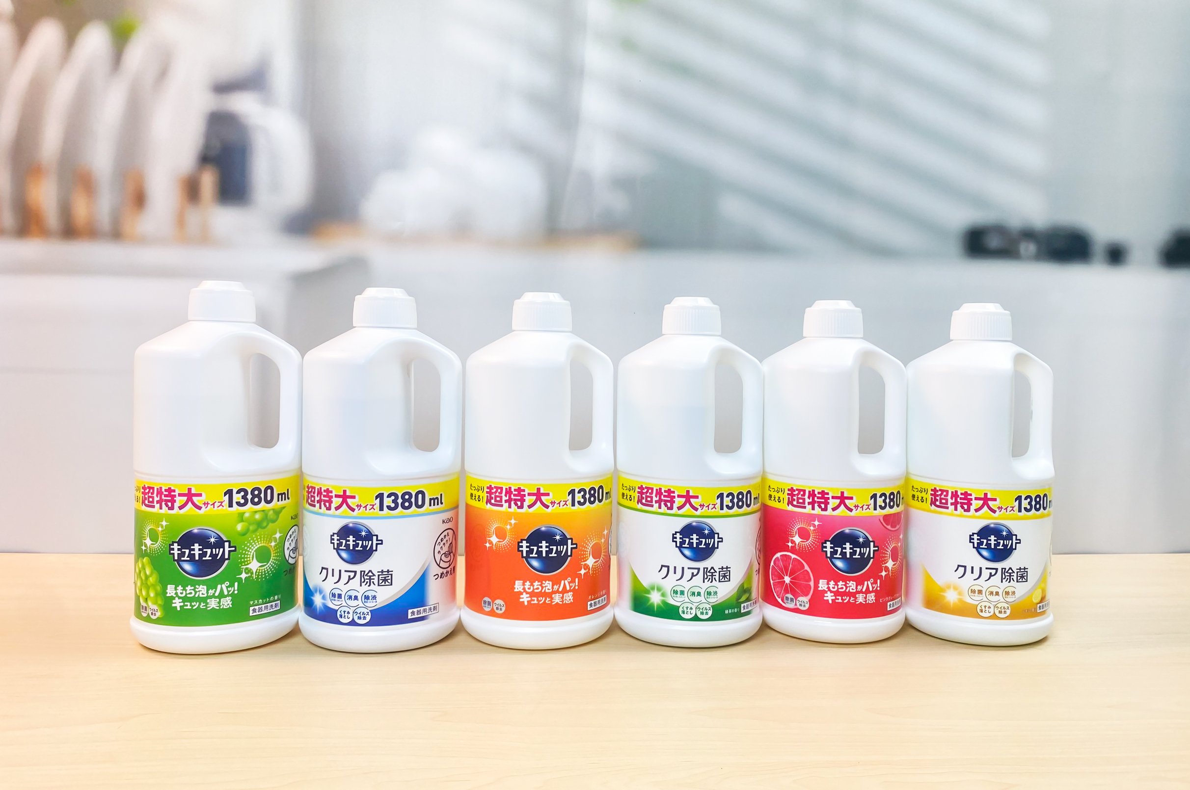 Thành Phần Nước rửa bát Kao Kyukyuto 1380ml Nhật Bản: Surfactant, alkyl sulfobetaine hydroxy, glycosides alkyl, natri dialkylsulfosuccinate, hương trái cây, chất ổn định, chất khử trùng…