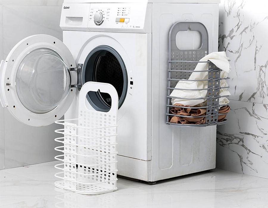 Rổ để quần áo bẩn dán tường có hai màu sắc để bạn lựa chọn: trắng và xám – hai màu sắc trung gian để bạn có thể dễ dàng phối màu với khu vực để máy giặt của gia đình.