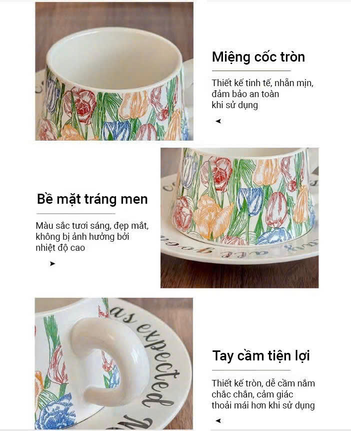 - Cốc sứ được tráng men, không bong chóc, chống trày xước.