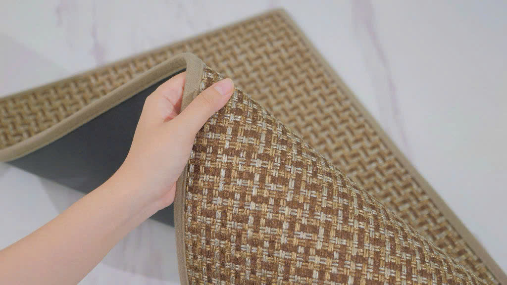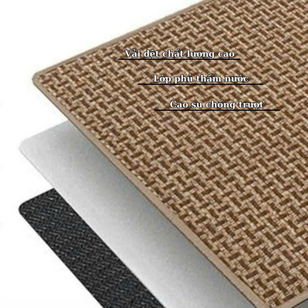- Thảm sợi dệt polyester cao cấp, thiết kế đan xen tỉ mỉ, thấm hút nước tốt.