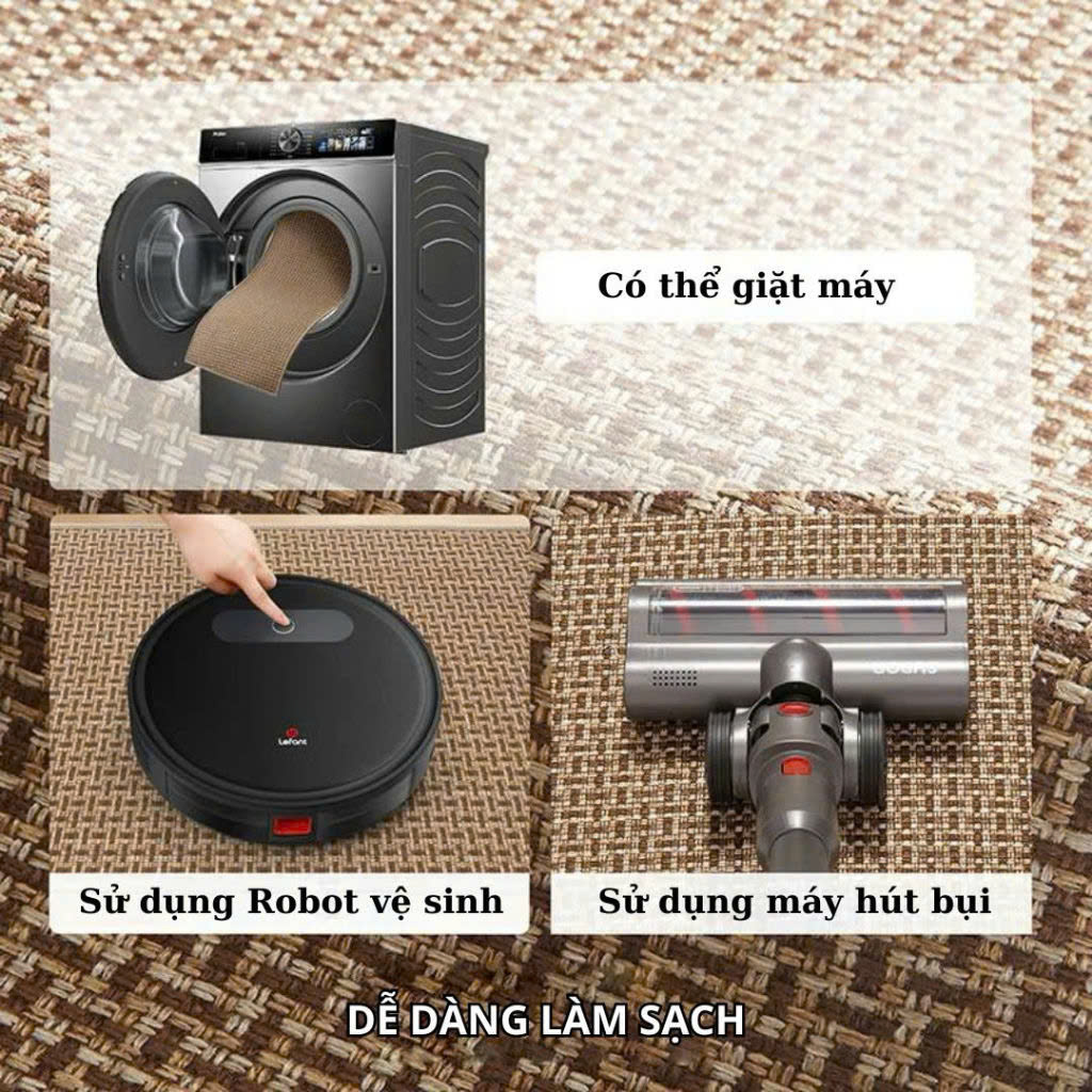 - Có thể giặt bằng máy giặt thông thường, nhưng để sử dụng thảm được bền nhất shop khuyến khích khách hàng dùng bàn chải cọ các vết bẩn và giặt bằng tay.
