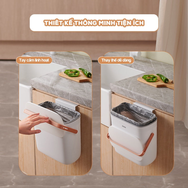 Thùng rác treo tủ bếp có nắp trượt thông minh giúp đậy kín chống mùi & côn trùng giúp bếp luôn thơm tho và sạch sẽ, khắc phục điểm yếu của thùng rác thông thường.