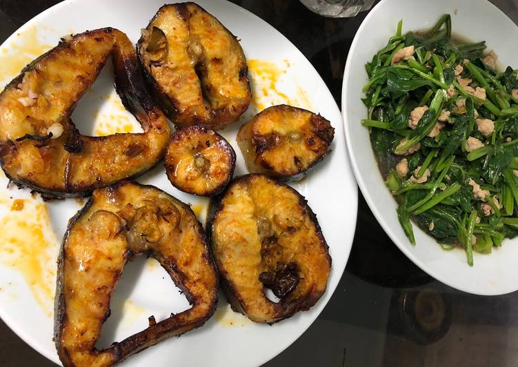 35. Món cá hồi ướp xì dầu nướng: