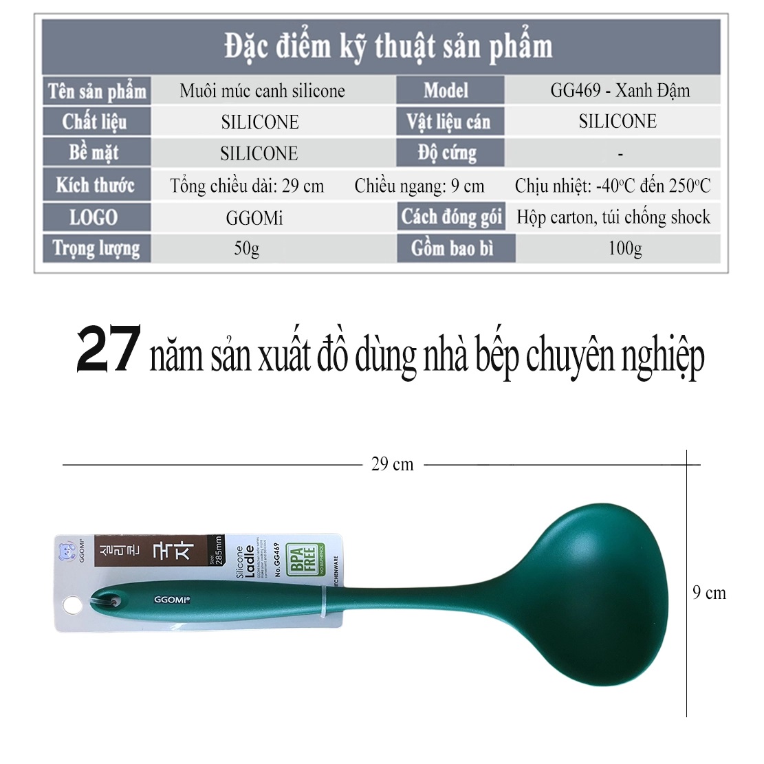 Thiết kế thân thiện người dùng: Muôi được thiết kế với bề mặt nhẵn chống bám bẩn, dễ lau chùi, khả năng chịu nhiệt lên đến 480 ° F có nghĩa là sản phẩm này an toàn với máy rửa chén.