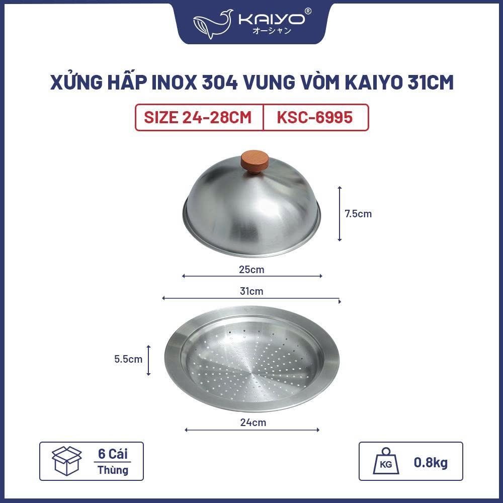 Xửng hấp inox 304 vung vòm Kaiyo 31cm (mã KSC-6995) là sản phẩm gia dụng cao cấp đến từ thương hiệu Kaiyo, được thiết kế tối ưu cho nhu cầu hấp chín thực phẩm một cách an toàn, nhanh chóng và tiết kiệm thời gian. Sản phẩm phù hợp với các loại nồi từ size 24–28 cm, tiện dụng cho mọi gia đình.